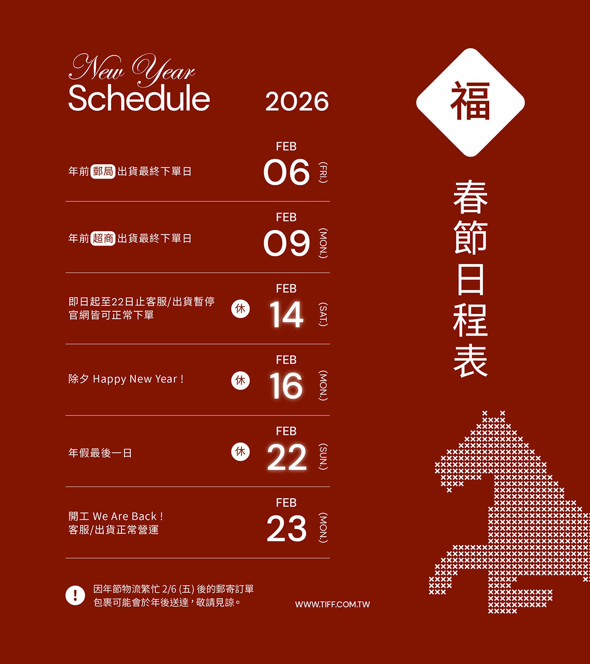 📦 春節前最後出貨日:02/13(五)