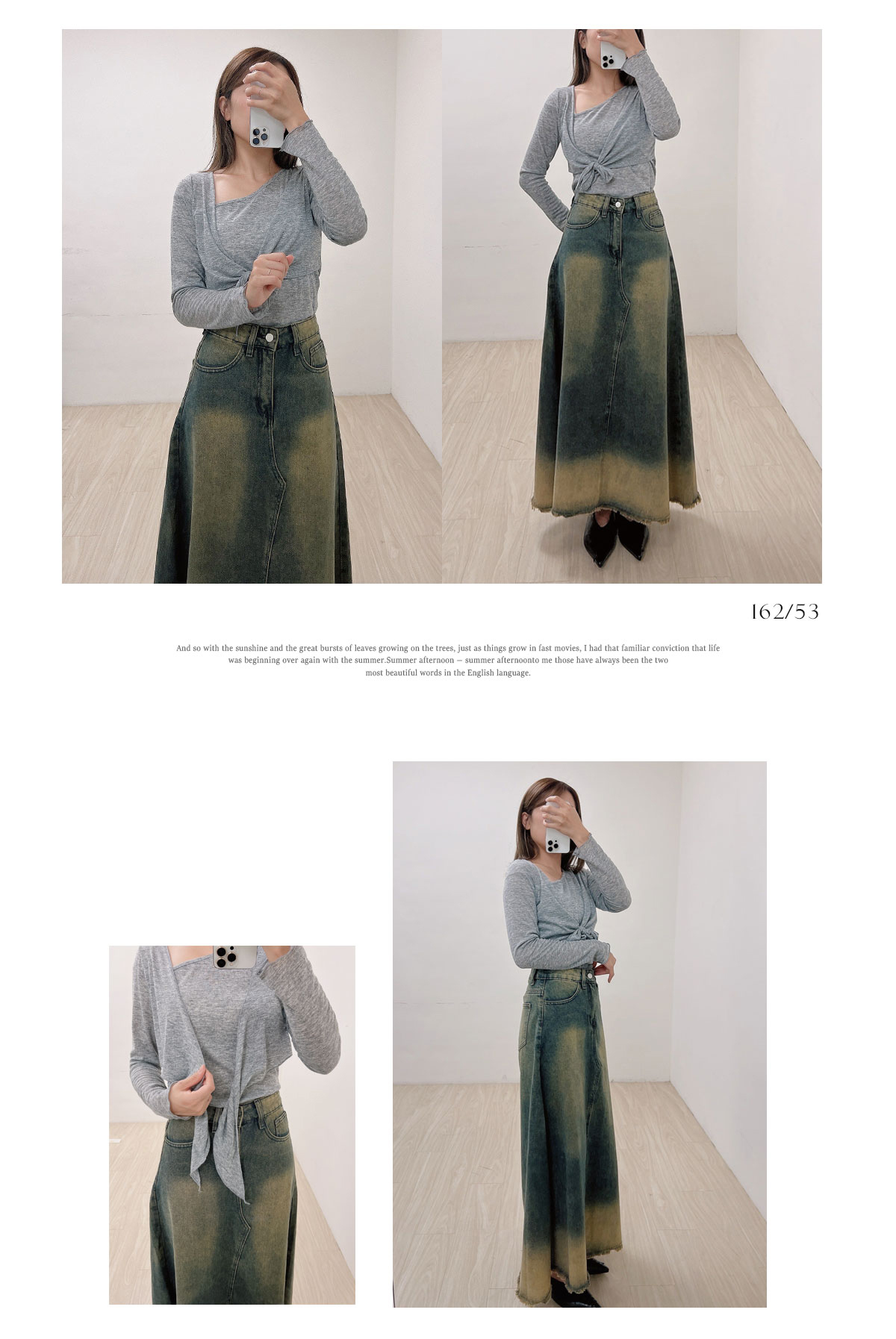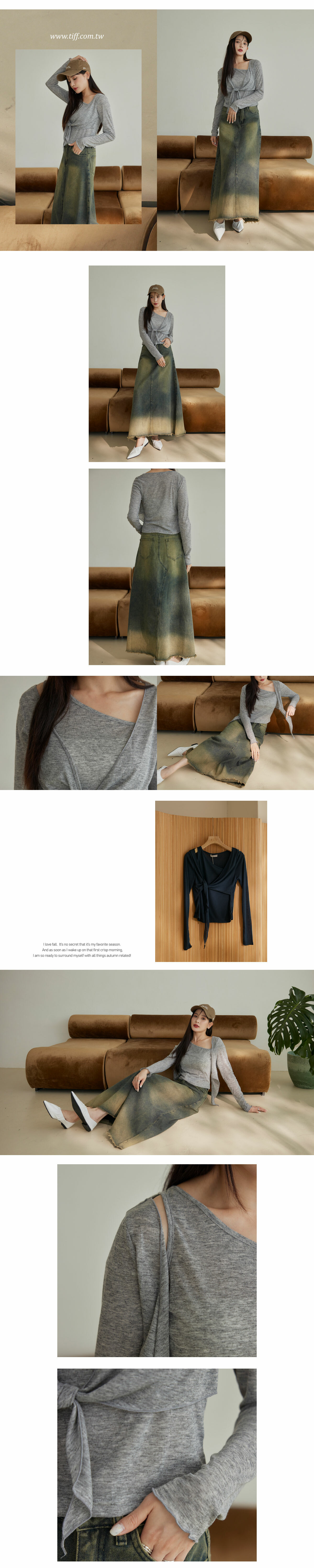 【雙11優惠款】 假兩件斜肩前綁帶上衣