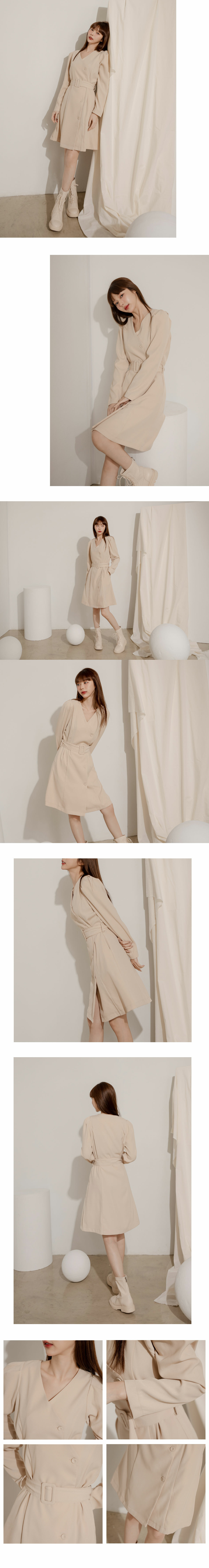 【官網限定】優雅側排釦V領短洋裝 (附腰帶)