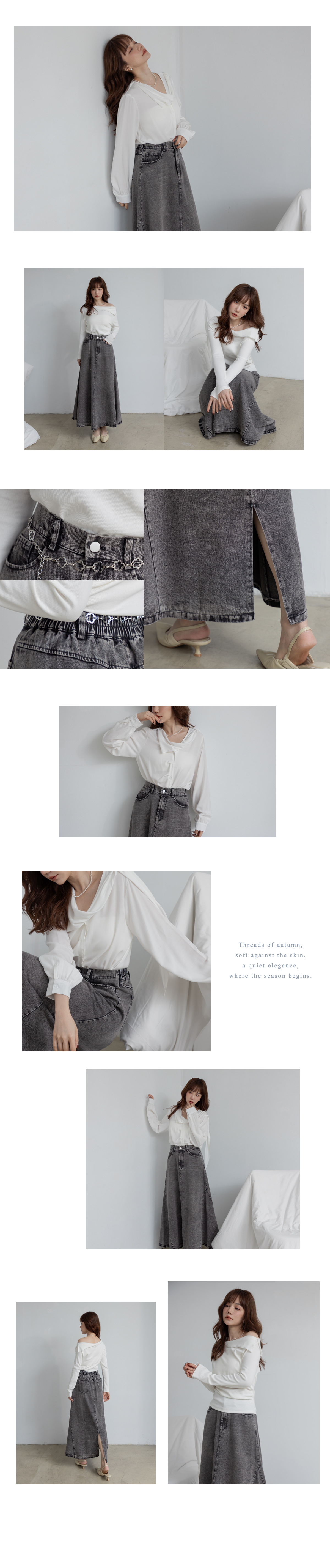復古A字圓擺牛仔長裙