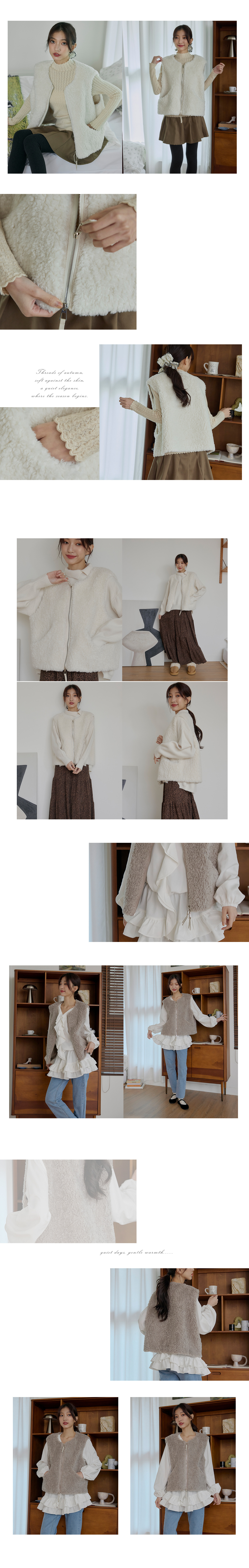 泰迪絨雙拉鍊背心外套