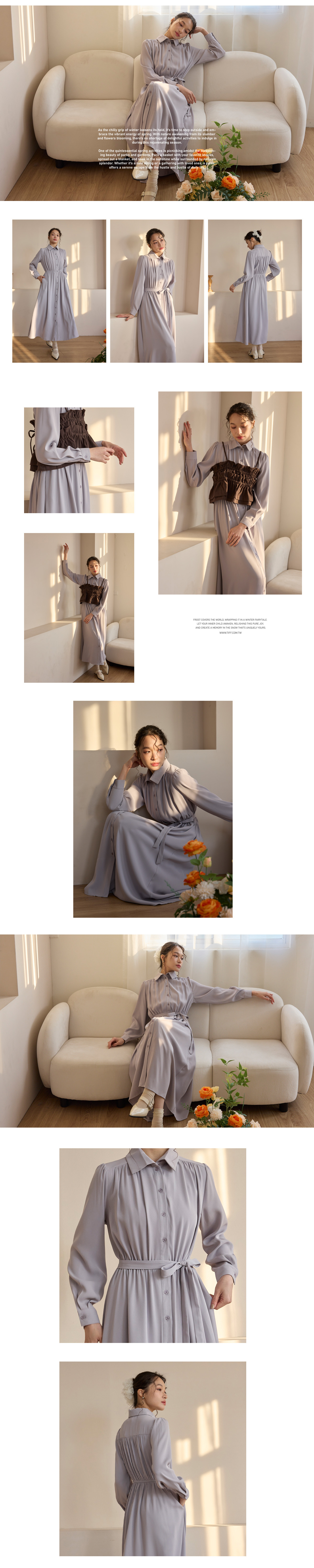 縮腰傘襬長洋裝(附綁帶)